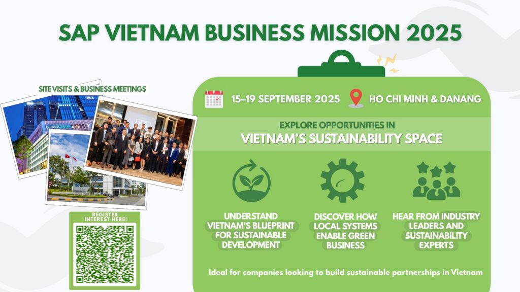 16 September | AM: Sharing sessions on Vietnam’s economic and legal landscape plus business setup requirements Networking Lunch PM: Sustainability-themed networking with local businesses | Ho Chi Minh City |
